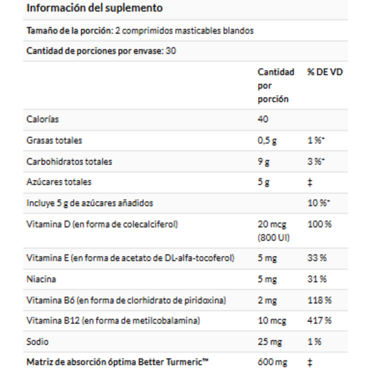 ¿Rigidez articular, inflamación o molestias musculares que limitan tu día a día?🦴Better Turmeric® ofrece una solución inmediata y deliciosa, aportando curcumina de ultra alta absorción, que ayuda a reducir la inflamación, mejorar la movilidad y apoyar la salud articular, con un 329 % más biodisponibilidad gracias a su exclusiva matriz HydroCurc® y superalimentos funcionales.