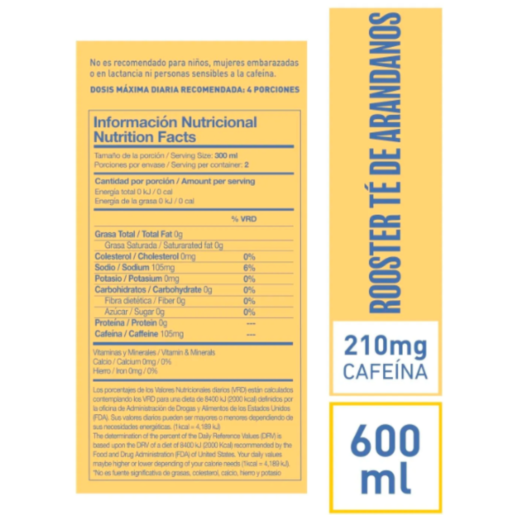 Rooster Té Arándanos + Cafeína – Energía natural | 600 ml